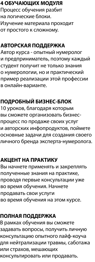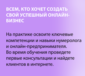 Первый мой контакт с Твоей нумерологией у меня был тогда, когда ты это впервые представила в рамках академии, и тогда меня это сильно зацепило на нементальном уровне. Я спрашивала тебя тогда, где этому можно было обучиться. Не получив на это ответа, я покупала книги по нумерологии, но они у меня не пошли - информация в них осталась для меня ”мертвой” и не интересной. Поэтому, в тот момент, когда я прочитала о начале этого курса у тебя, в ту же секунду послала свою заявку об участии - решение и ”договор” об этом у нас с Тобой был уже давно ))), теперь он вступал в силу. Сомнений не