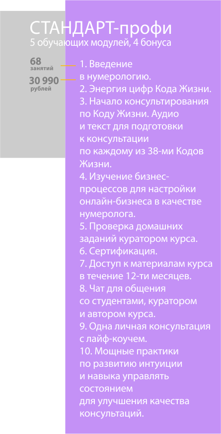 Я, конечно же, размышляла на тему, как будет строиться обучение, удивляло, что так много уроков и уровней. Думала, что, наверное, ты будешь давать информацию для запоминания, объяснения значений цифр, выучив которые мы будем ”повторять” другим людям на уже своих консультациях.